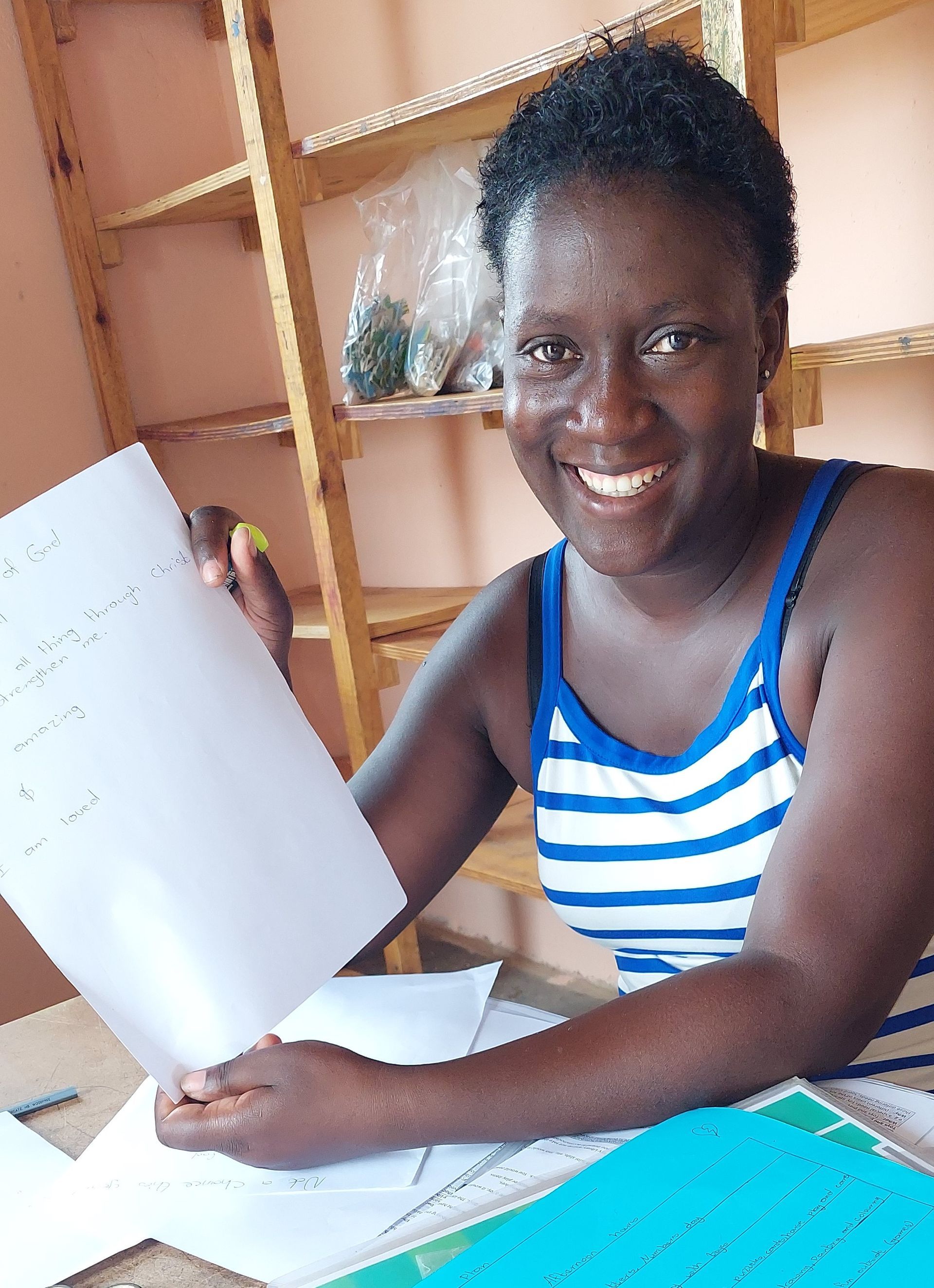 But I wasn't only able to announce a significant salary increase to Emely and Rosmarie, but also to... Roceline In our educational playroom (Toy Library), the staff member who has now successfully completed her two-year training as a childcare worker is pleased to receive a 50% increase.